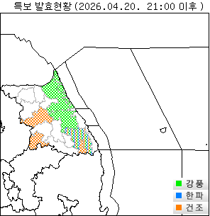 | 한파(℃) | 호우(mm) | 폭설(cm) | 강풍(m/s) |