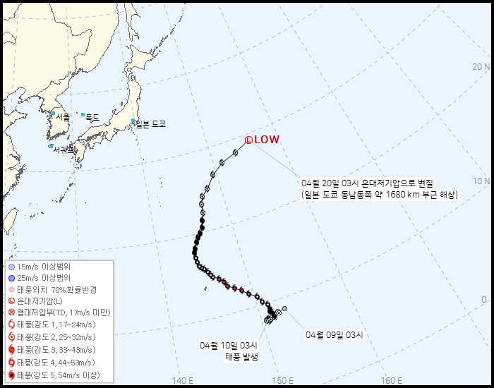 제 4호 태풍 실라코(SINLAKU) 2026년 04월 20일 04시 00분 발표