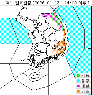 | 한파(℃) | 호우(mm) | 폭설(cm) | 강풍(m/s) |