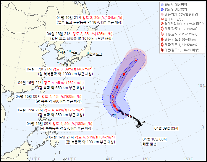 제 4호 태풍 실라코(SINLAKU) 2026년 04월 14일 22시 00분 발표