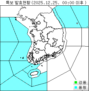 o 강풍주의보 : 경기도(안산, 시흥, 김포, 평택, 화성), 서해5도, 충청남도(태안, 당진, 서산, 보령, 서천, 홍성), 전라남도(담양, 곡성, 장성, 흑산도.홍도 제외), 전북자치도(고창, 부안, 군산, 김제), 경상북도(영덕, 울진평지, 포항, 경주), 경상남도(산청, 통영, 거제, 남해), 제주도(제주도서부 제외), 인천, 부산, 울산