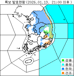 | 한파(℃) | 호우(mm) | 폭설(cm) | 강풍(m/s) |