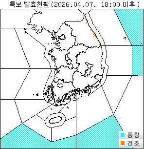o 건조주의보 : 강원도(강릉평지, 동해평지, 삼척평지, 속초평지, 고성평지, 양양평지)