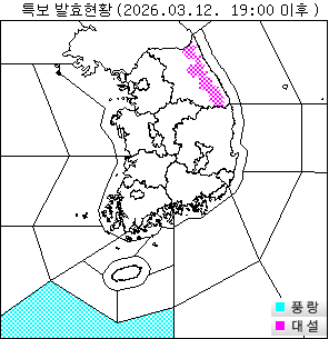 o 대설주의보 : 강원도(태백, 강원북부산지, 강원중부산지, 강원남부산지)