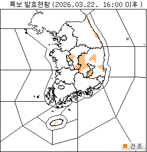 o 건조주의보 : 경기도(광명, 동두천, 군포), 강원도(강릉평지, 동해평지, 삼척평지, 속초평지, 고성평지, 양양평지), 충청북도(청주, 영동), 경상북도(구미, 김천, 상주, 문경, 안동, 포항), 제주도(제주도산지), 서울(서울동북권, 서울서남권), 대구(군위 제외)